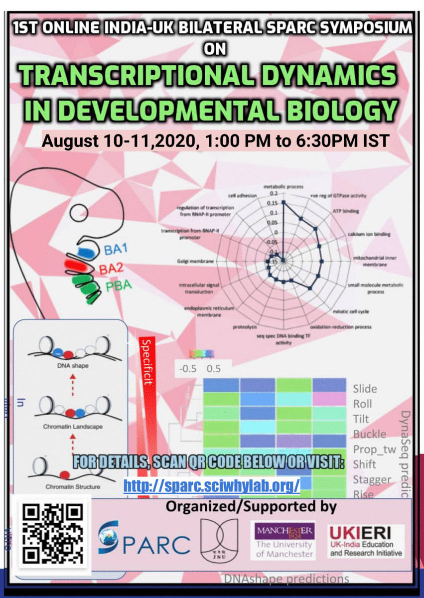 We invite you all to attend the "First Online India-UK SPARC symposium on Transcriptional Dynamics in Developmental Biology" which is sponsored by SPARC, UKEIRI,and The University of Manchester and organized by School of Computational & Integrative Sciences, Jawaharlal Nehru University, New Delhi, Delhi-110067, India.